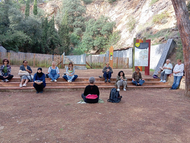 The walk took us through a peaceful park, surrounded by greenery and gentle silence. After a short route adapted to everyone’s pace, we found a space between the trees that invited us to sit down, breathe deeply, and let ourselves be guided through a meditation led by Montse Pera. What happened next can only be described as pure emotion. One of the women shared, with tearful eyes: “A tear fell… I felt connected to the trees.” These are the moments that give meaning to this Week: instants that break routine, awaken something inside, and remind us that we do not walk alone.