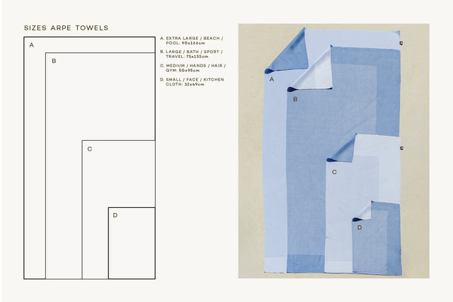 · 2 different sizes: medium (50x95cm) & XL (90x166cm).