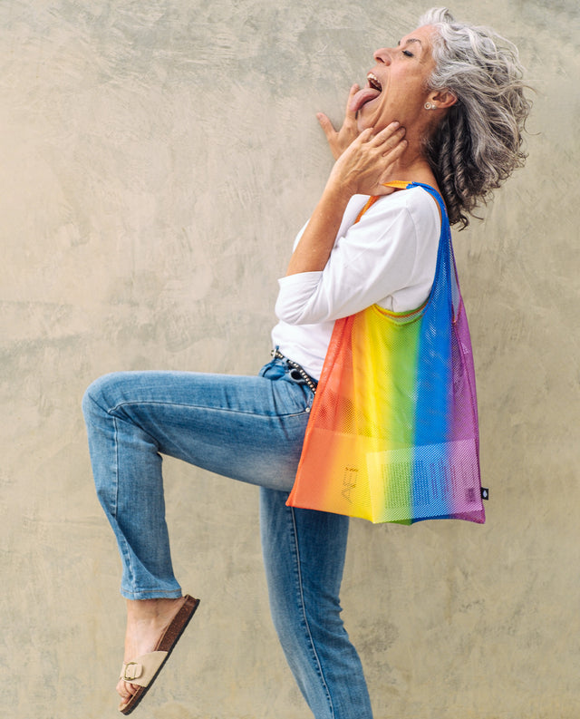 Gritamos "AMOR" bien fuerte con nuestra Edición Especial Rainbow, creando una bolsa de rejilla que te transporta a los orígenes, a las raíces.